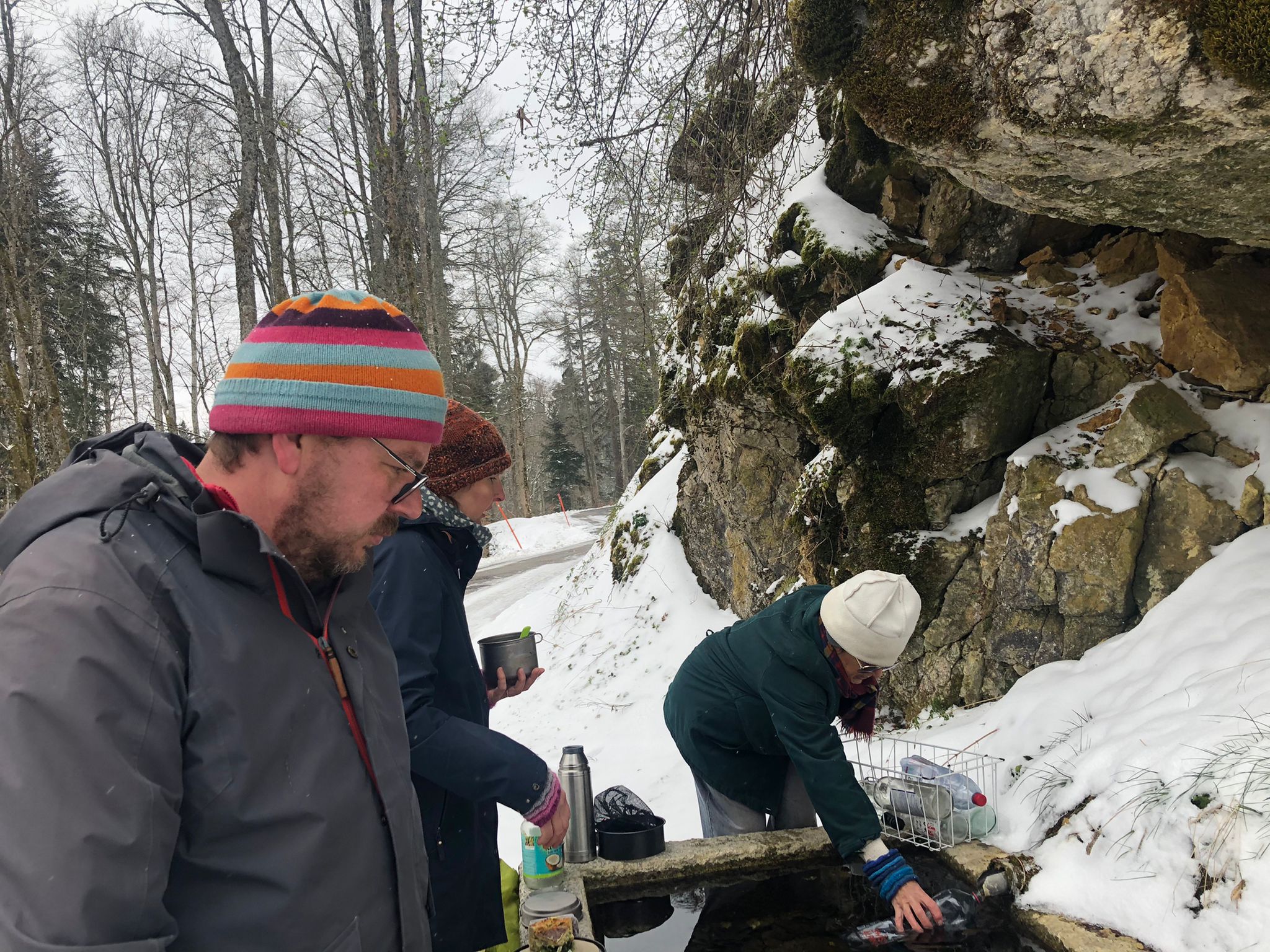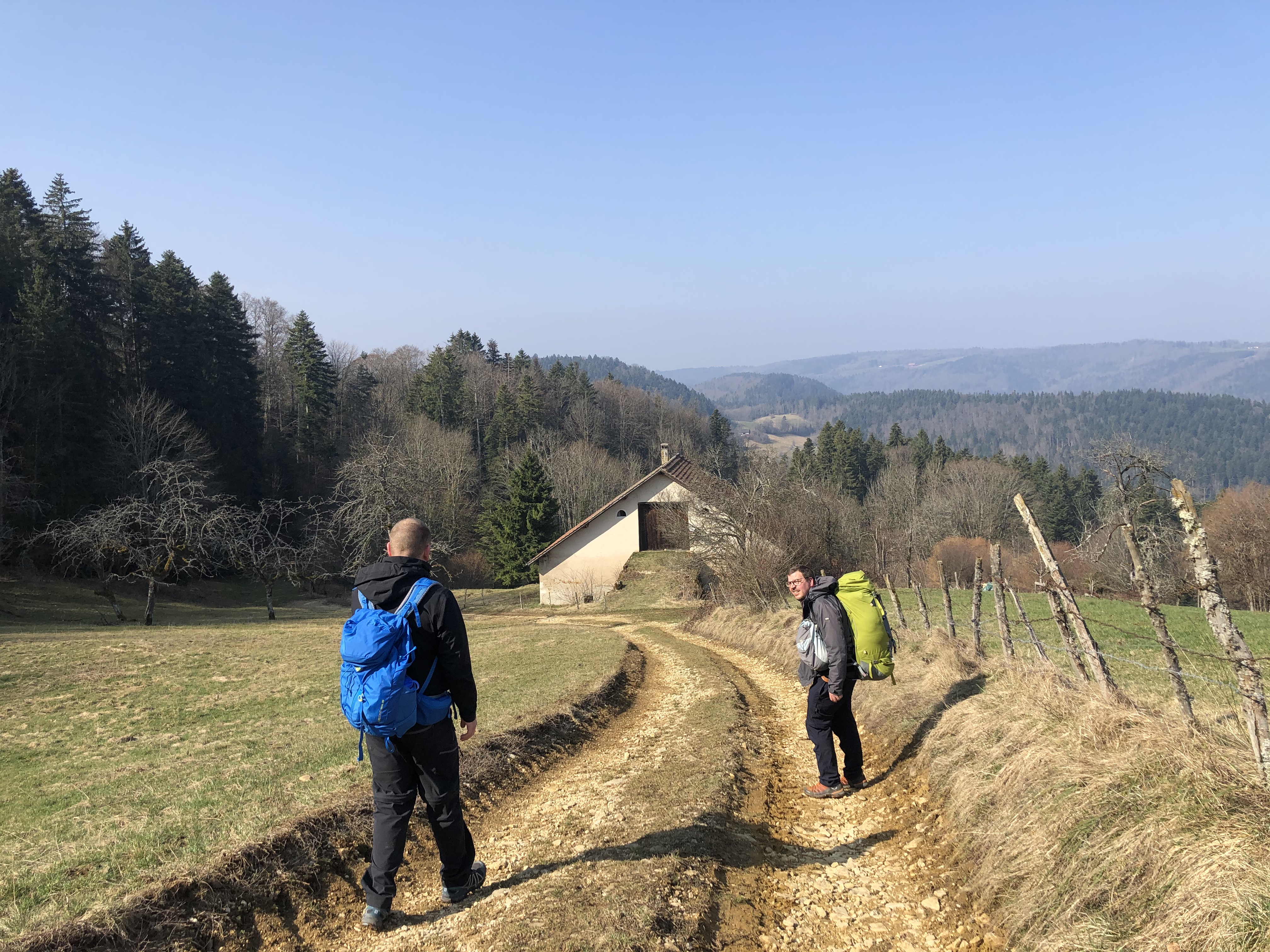 Samstag, 19. März 2022 3. Etappe Saingelégier - Soubey Christoph, Karin, Ueli |